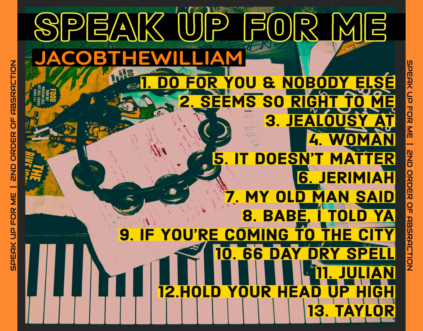 Coming soon is the original acoustic collection by Jacobthewilliam. Named "THE 12 ORDERS OF ABSTRACTION" the collection will be appropriately featured on 12 seperate albums as they highlight a young mans struggle to maintain significant relationships as he tries his best to become his ownperson, all while navigating the complicated world around him. Each album will be released on the 12th day of every month (for 12 months) throughout 2020. So be sure to collect them all, as a limited number will be made! (Having a completed set will no doubt be rare and worth your while someday... we assure you.)
