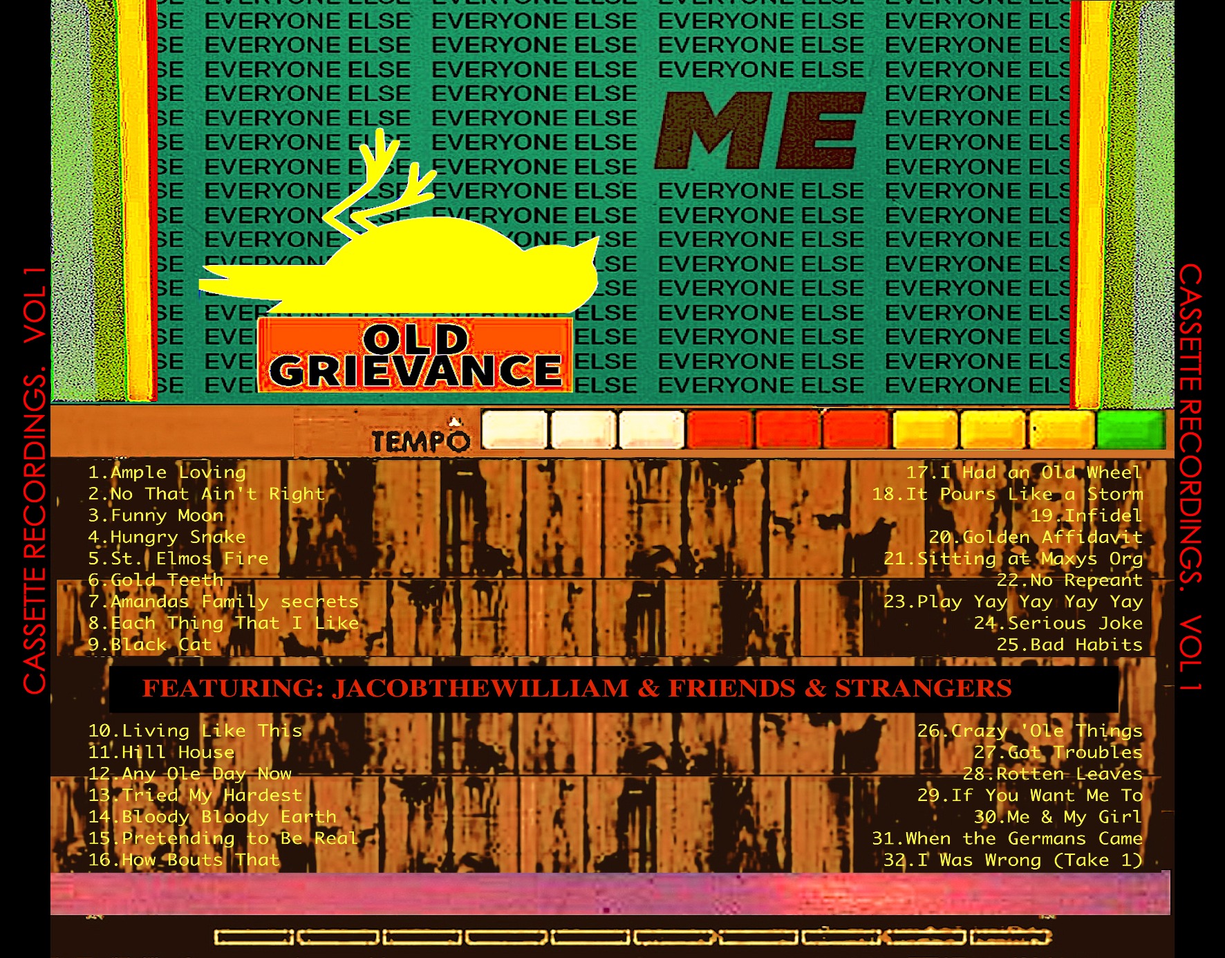 Here, i am releasing the first volume of songs. It means a lot to me because its friends (or strangers) playing together, and enjoying it! On every track is myself, solo, or accompanied with one or several different friends, in different situations or different environments. Hopefully you'll be able to pick up on it. Feel free to ask me anything. Whatever you'd like. Wheew, that was long ... I bet I lost most of you LOL. Oh well, fuk it.! Enjoy....